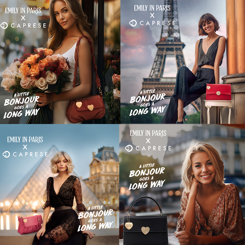 Caprese’s newly launched ‘Emily in Paris’ collection, showcased via AI-generated images, is accessible exclusively through the brand’s website and official social media platforms.