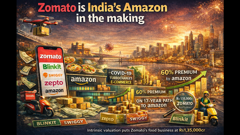 Taurani’s “Internet on Eternal” playbook:a deep dive into platform valuation methodology:compares Zomato to Amazon on a 30-year lifecycle basis. The verdict: Zomato is roughly in its 17th year of operation, precisely where Amazon sat when it finally hit breakeven profitability. But unlike Amazon in 2005, Zomato is growing revenue at 46 per cent compound annual growth versus Amazon’s 22 per cent at the same stage. That speed differential justifies Zomato trading at 4.9 times forward enterprise value-to-sales, compared with Amazon’s 2.3 times back then:a 60-70 per cent premium that investors have been questioning.