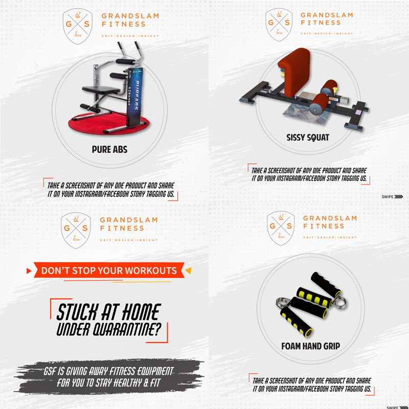 To lessen the social distancing effect from the gym, the giveaway fitness campaign #fightagainstcorona will be starting from 18th March 2020 and will be giving away products to 1000 winners on Instagram and Facebook by the given guidelines of the giveaway: Take a screenshot of any of the given product and share it in your social media and tag Grand Slam Fitness.