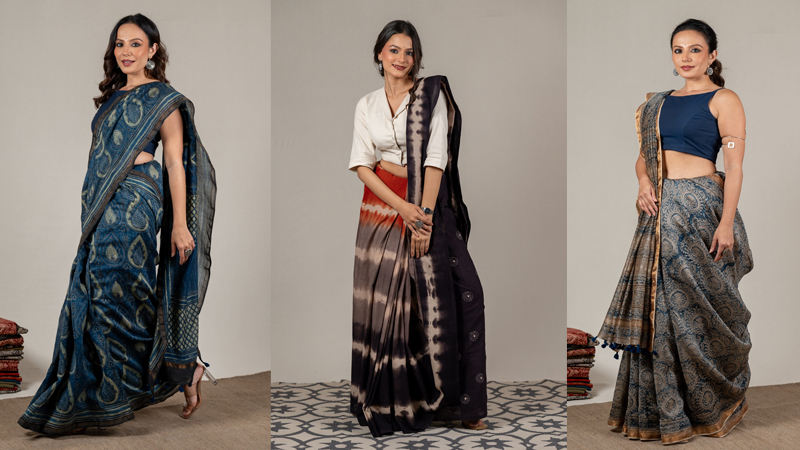 The colour palette leans into earthy calm, with indigo, deep black, rust, madder yellow, rustic red and warm beige anchoring the range. The pieces shift easily from office hours to festive evenings, making the saree feel less like an occasional indulgence and more like an everyday companion.