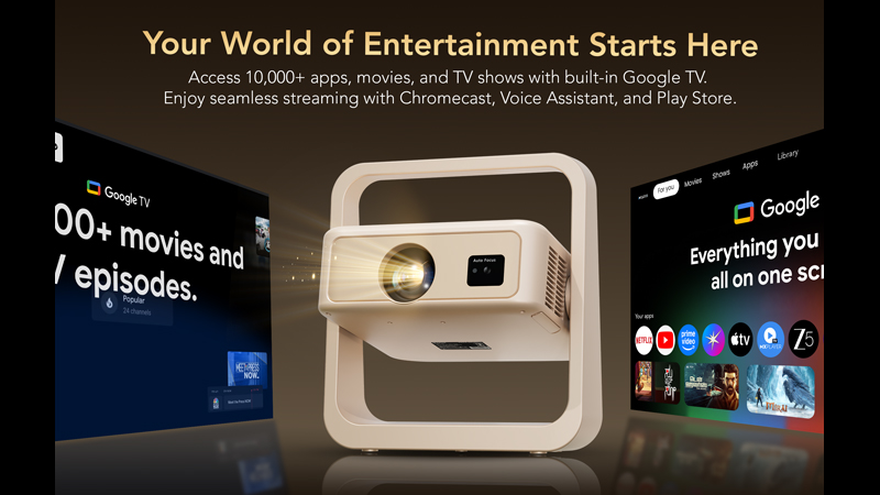 The Yuva Infinity comes with 1200 ANSI lumens of brightness, auto focus and a 180 degree rotatable stand, allowing users to beam content onto walls or ceilings without much fuss. With Google TV built in, popular apps such as Netflix and Prime Video are ready to stream straight out of the box, cutting out the need for extra devices.