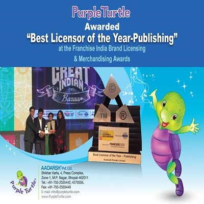 Aadarsh directors Ashish and Manish Rajoria said, “Aadarsh specializes in printing, publishing, IP development, licensing and entertainment for children and we are committed to set new benchmarks for Indian Innovation and IP in content on the global dais. We are delighted to be the winner of prestigious Licensor of the year- Publishing Award at the popular Brand Licensing and Merchandising conference of Indian eRetail Congress 2015. We are honoured that Purple Turtle has added another accolade in its global recognition portfolio.”