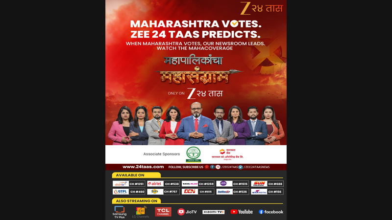 Under the banner 72 Hours | 72 Reporters | Non-Stop Coverage, Zee 24 Taas will deliver uninterrupted, ground-level reporting from polling booths, counting centres and political nerve centres. The coverage is designed to run seamlessly through voting day, counting and emerging trends, offering viewers real-time updates without pause at every critical turn of the election process.