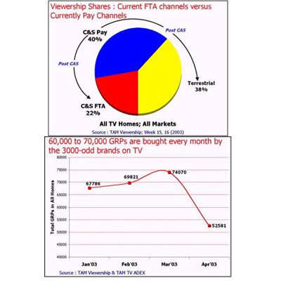 All these results, says the TAM study, will depend on whether viewership patterns change after CAS, on whether the progression of CAS gets all the pay channels back in the reckoning (which depends on the price of the Set-Top Box) and on the significance of the four metros to the 3000-odd brands advertising on TV.