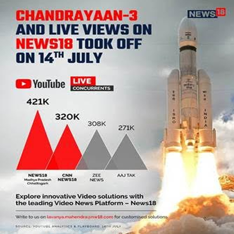 Streaming the launch live on YouTube, News18 platforms including regional channels witnessed record number of live concurrent viewers.