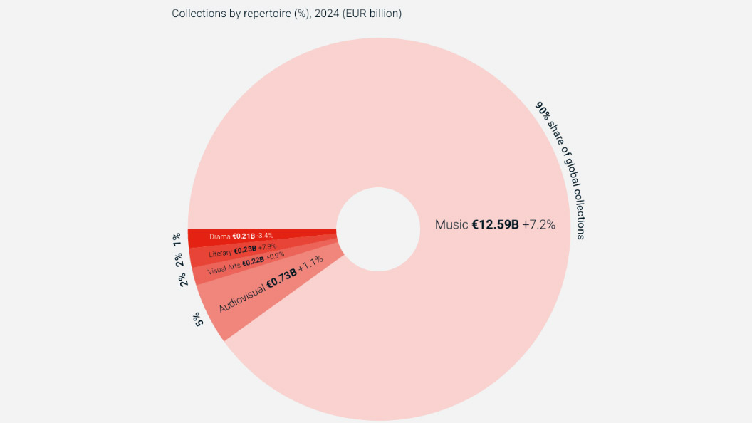 The CISAC report also sounds the alarm on another front: generative AI. It forecasts that AI-generated outputs could reach EUR 40 billion by 2028, making up 60 per cent of music library catalogues and potentially causing a 24 per cent decline in creator revenues.