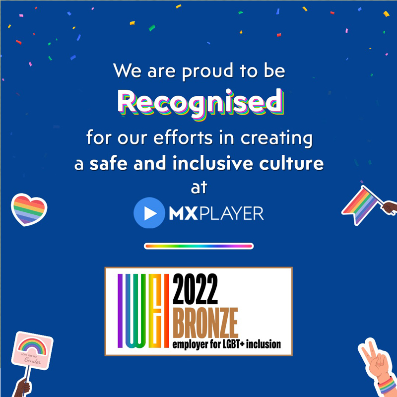 MX Player has been honoured with the bronze badge, which recognises the development of inclusive policies and the initiation of activities that promote LGBT+ inclusion at work.