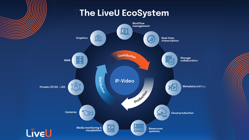 The LiveU EcoSystem is a modular set of best-of-breed components, allowing customers to deploy different configurations and workflows, aligned with their production requirements. It is underpinned by LiveU’s resilient and low latency LRT (LiveU Reliable Transport) protocol and further enhanced by LiveU IQ (LIQ), LiveU’s revolutionary connectivity solution.