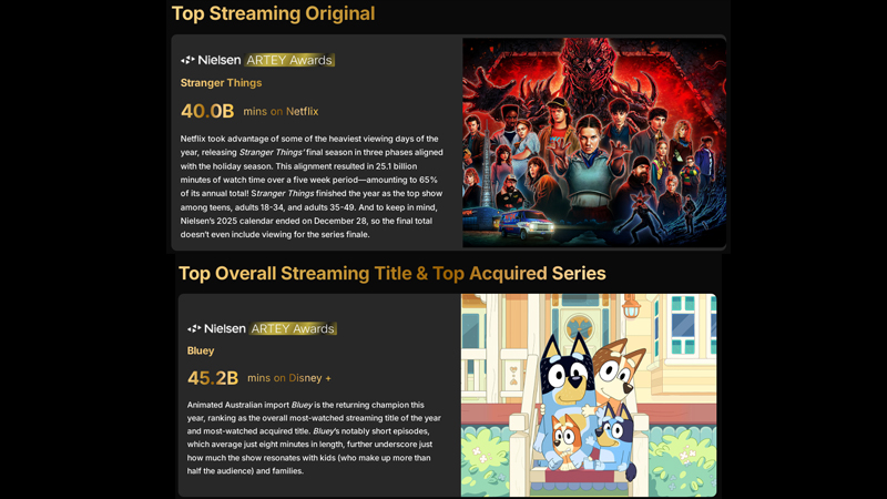 Nielsen crowns Bluey, Stranger Things at 2025 streaming awards