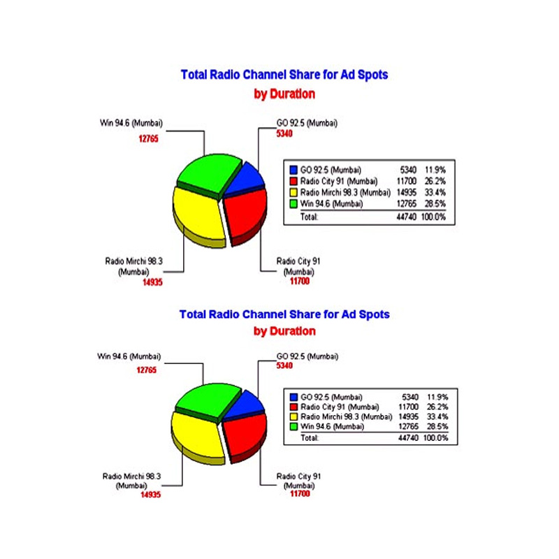 According to figures released by Perfect Monitoring, there were a total of 1846 spots in seven days, averaging 462 per station per day. Of the total airtime, 44740 seconds in seven days averaging 11185 per station per day were spent by the various brands on all the channels, clubbed together.