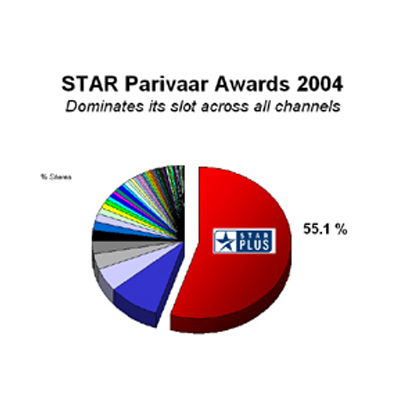 One of the main reasons for this could be that in 2003 the event was a three-hour affair, while this year the whole show was extended by an hour. The dilution effect was imperative. Still, an interesting point is that in the C&S 4+ Hindi speaking markets, the viewership numbers increased from 18,632 in 2003 to 20,052 in 2004 with Gujarat contributing the largest share to the pie, recording a TVR of 21.5. Also, demographically speaking, the age group between 15 to 24 years TG performed the best, registering the highest TVR of 16.6.