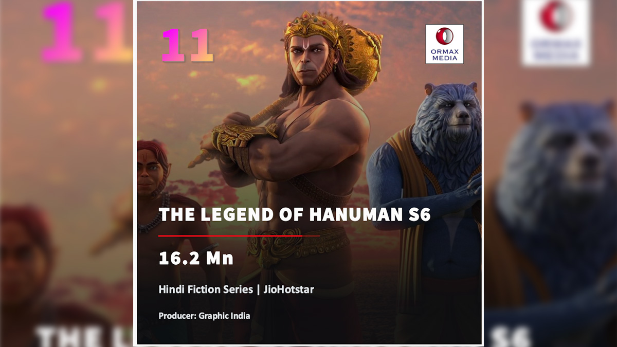The Legend of Hanuman – Season 6 has ranked at number 11 in Ormax Media’s Top 50 Streaming Originals in India: The 2025 Story, making it the only animated series to feature on the list. With an estimated 16.2 million viewers, it stands shoulder to shoulder with heavyweights such as The Family Man S3, Panchayat S4, Paatal Lok S2, Special Ops S2, and international juggernauts including Squid Game S3 and Stranger Things S5.