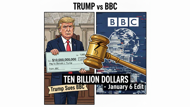Donald Trump has filed a $10 billion defamation lawsuit against the BBC over a 2024 “Panorama” documentary that edited his January 6, 2021, speech to supporters before the U.S. Capitol riot. The Miami federal court filing demands at least $5 billion per count for alleged defamation and breach of Florida’s Deceptive and Unfair Trade Practices Act.