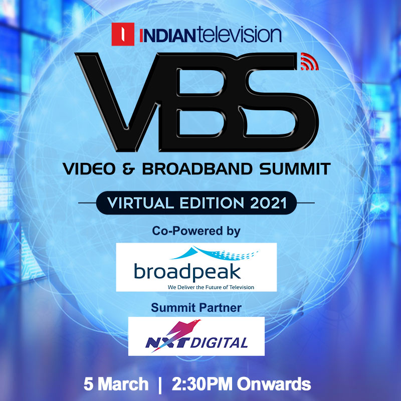 Come join us for stimulating conversations, incisive insights and deliberations on the future roadmap of the industry at the Video and Broadband Summit 2021 on 5 March at 2:30 pm. Register now at https://www.indiantelevision.com/micro/vbsnew/index.html#