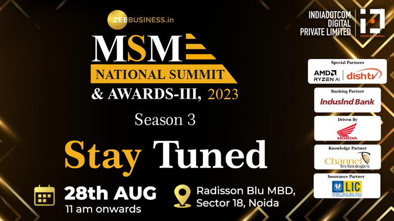 Mumbai: As the world becomes more interconnected, MSMEs are presented with unprecedented opportunities to tap into newer regions and markets. Innovative manufacturing processes not only boost productivity, but also adhere to environmental and social standards. After the phenomenal success of Season 1 and Season 2, Zee Business.in is thrilled to announce the launch of the much-anticipated MSME National Summit and Awards 2023, Season-3 on 28 August 2023. This on-ground event, presented by Zee Business.in, hosted by IndiaDotcom Digital Private Ltd on 28 August 2023.