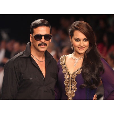 Mumbai: The India International Jewellery Week (IIJW) 2013 got off to a dramatic start, opening with the ‘Beti’ show presented by India’s leading jewellery brands Nakshatra,D’damas, Gili, Asmi and Envi by Gitanjali and Gemfields. The spectacular presentation saw D’damas brand ambassador SonakshiSinha and Akshay Kumar, her co-star in Once Upon a Time in Mumbai Dobaara walking the ramp along with over 80 celebs from different walks of life. Miss India International 2011 AnkitaShorey also starred in the fashion sequence presented along with designer Mohini where models showcased some dazzling ornaments from the presenting jewellery brands.