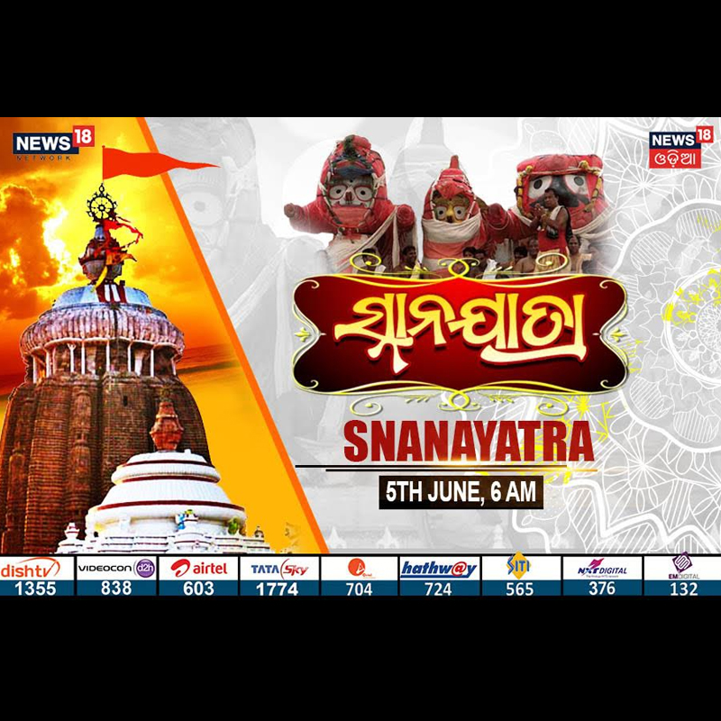 For 'Snanayatra’ the first major event of Sri Jagannath Rathayatra of Puri, News18 Odia will Telecast LIVE rituals on 05th June’20 from 0600am onwards. Experienced preachers will be in the studio for LIVE commentary.